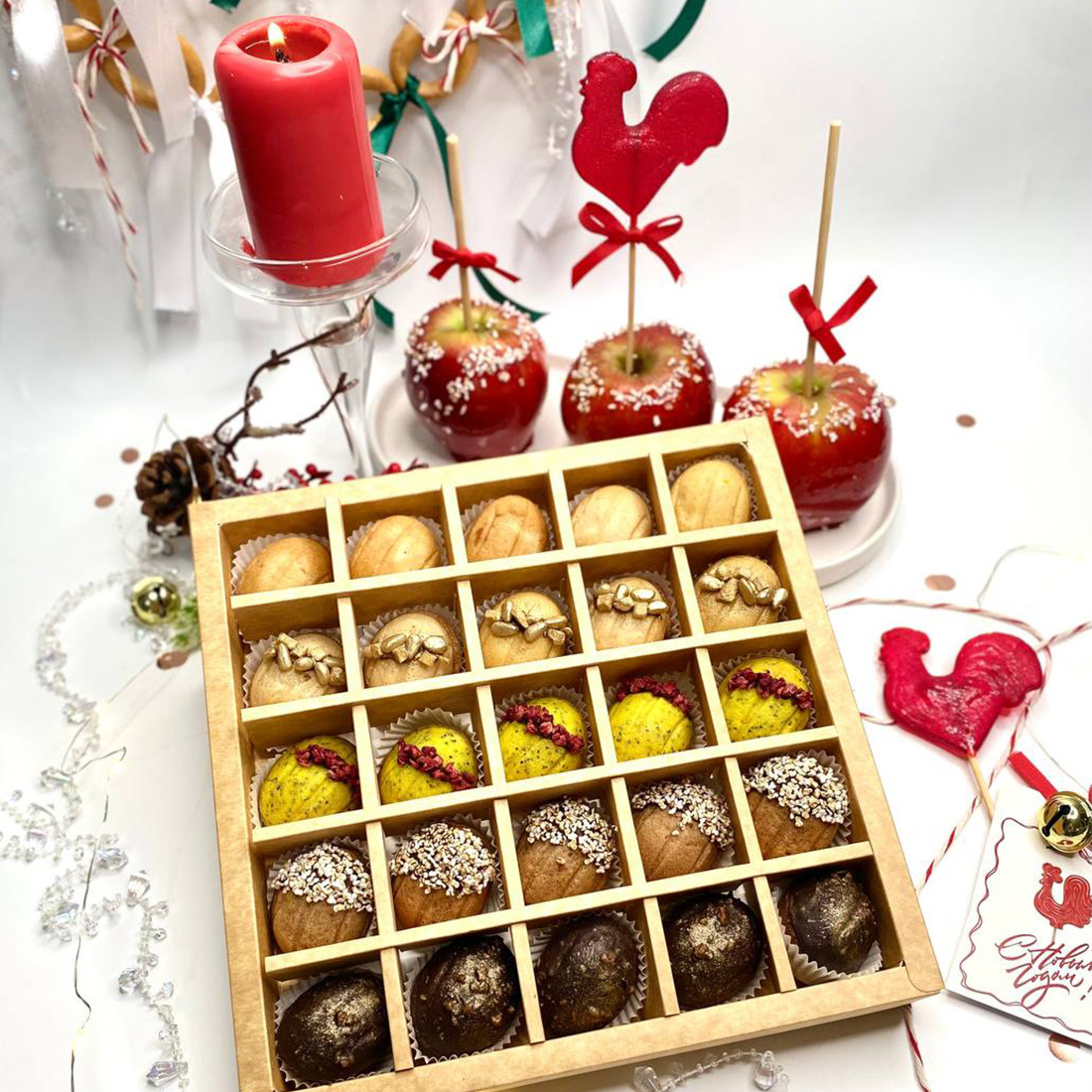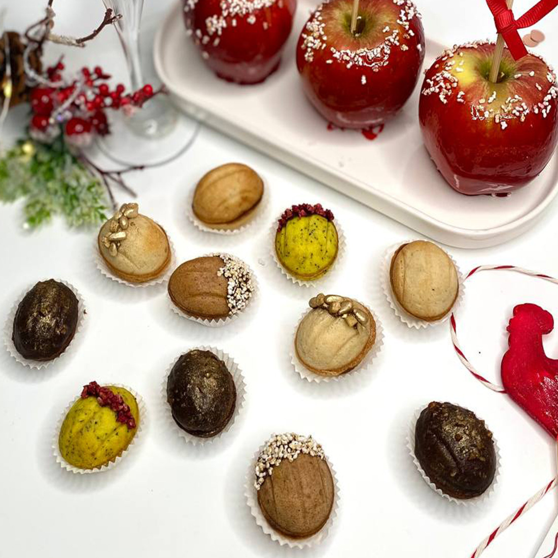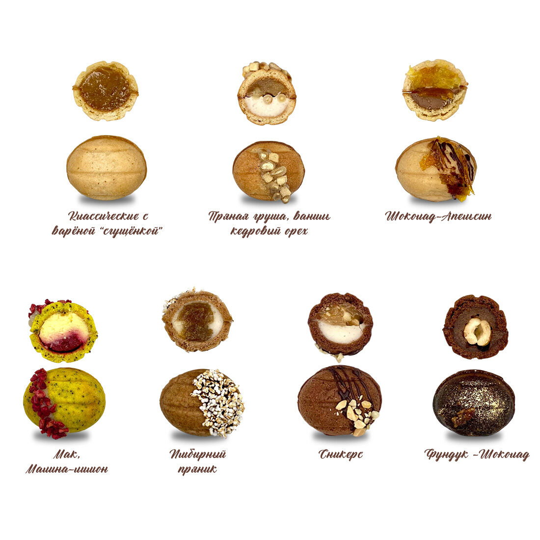 Новогодняя магия вкуса. Вдохновились вкусной традицией — и сотворили новогодние наборы песочных орешков с 7-ю уникальными авторскими начинками! Внутри каждого набора вас ждут идеально сбалансированные лакомства, приготовленные с заботой и любовью, светлыми пожеланиями и верой в то, что все мечты сбудутся! Орешки созданы из классных продуктов, vegan, без глютена и рафинированного сахара. Все как мы любим!